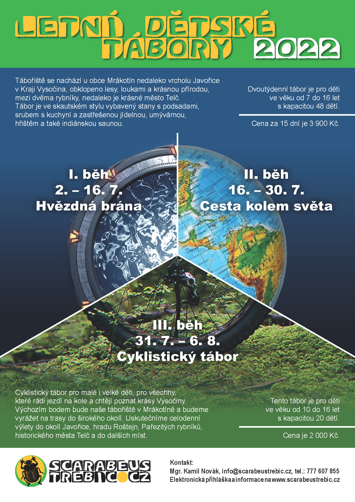Chcete zažít 15 dni srandy a dobrodružství na našem krásném tábořišti nedaleko obce Mrákotín mezi rybníky Mrzatci? Přihlaste se na náš letní dětský tábor!